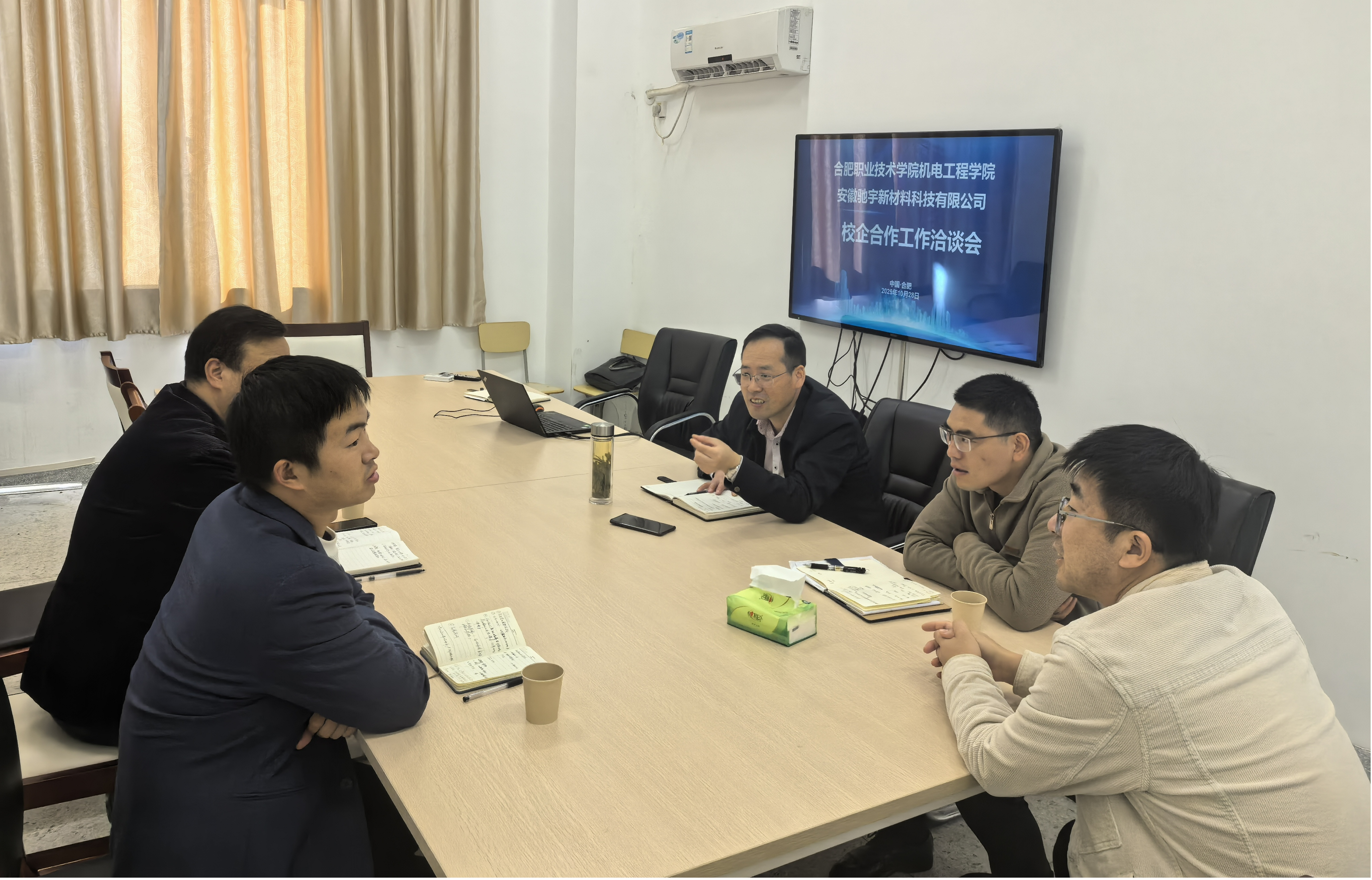 胡木林对企业的来访表示热烈欢迎,并介绍了学校与机电工程学院的发展历程、专业设置以及岗位实习相关要求等情况。他强调,作为市属综合性高职院校,机电工程学院始终坚持以服务地方经济社会发展为宗旨,人才培养紧密对接合肥市重点产业布局。他还重点分享了该院在“现场工程师”联合培养、共建产业学院等校企合作模式上取得的成果与经验。