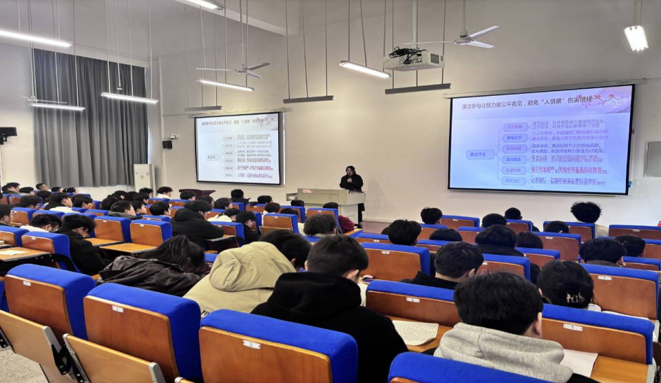 2025年11月19日,机电工程学院在北教201教室成功举办“清风润班”廉洁小课堂活动。本次活动由学管团队精心组织,陈宇老师作为课堂主讲人和各班级学生代表共同围绕评奖评优工作中的廉洁建设展开深入交流,为营造清朗、透明、温暖的班级氛围注入新动力。