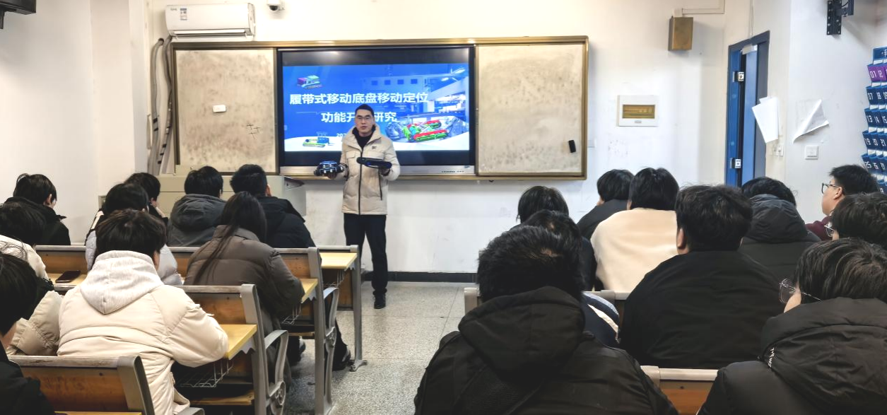 为推动智能装备领域学术交流与技术创新,促进科研成果与教学实践深度融合,1月19日下午,机电工程学院机电一体化技术专业教师宋忠春在汇心湖校区南517开展“履带式移动底盘移动定位功能开发研究”专题学术讲座。机电与机械相关专业师生齐聚现场,共同探讨履带式移动底盘技术的发展与应用。