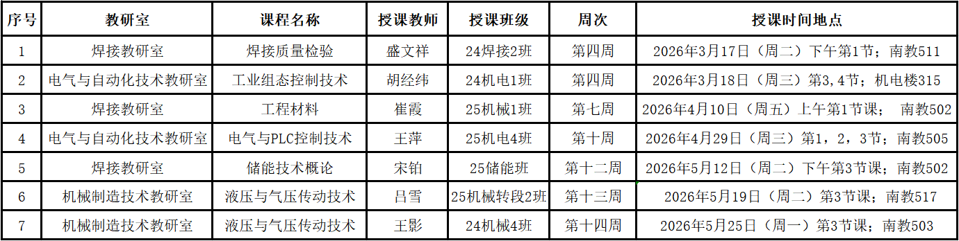 经各教研室推荐,本学期共安排7门课程公开课,具体信息如下(按照时间先后顺序):